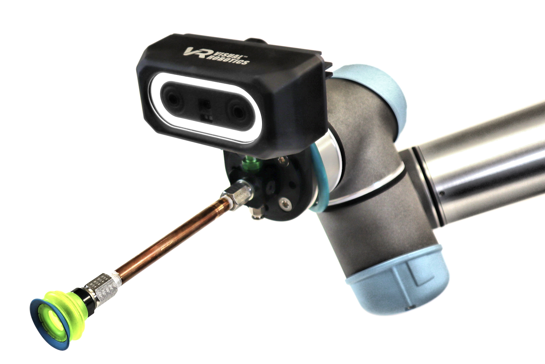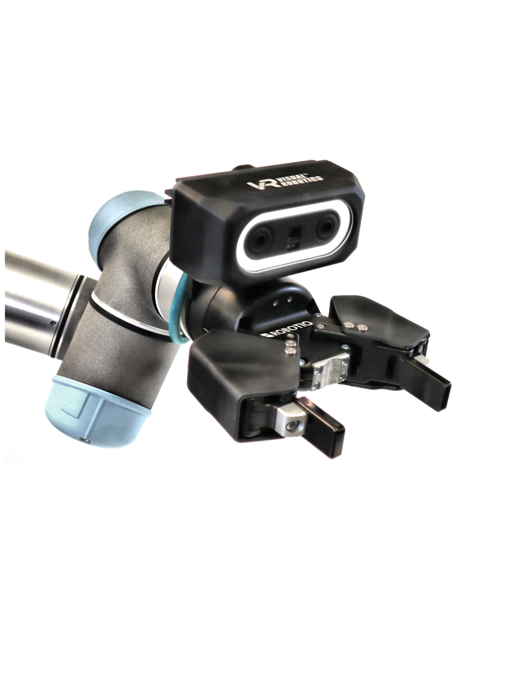 The VIM-303 mounts directly onto the robot arm, allowing the system to view objects from multiple angles and see inside containers, unlike fixed-mounted camera setups.