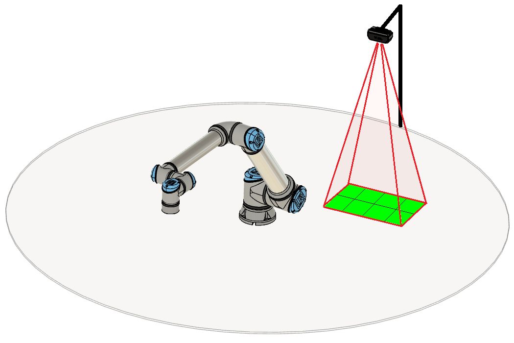 In addition to mechanical simplicity, our arm-mounted approach has resolution and field of view benefits as well. Conventional fixed-mounted vision systems have an inherent tradeoff between resolution and field of view. In order to see a large field of view, the camera must be placed far away, and thus has lower resolution. In order to increase the resolution, the camera must be placed closer, resulting in a small field of view. Increasing the field of view with high resolution requires either higher resolution cameras (expensive) or multiple cameras (expensive and complex).